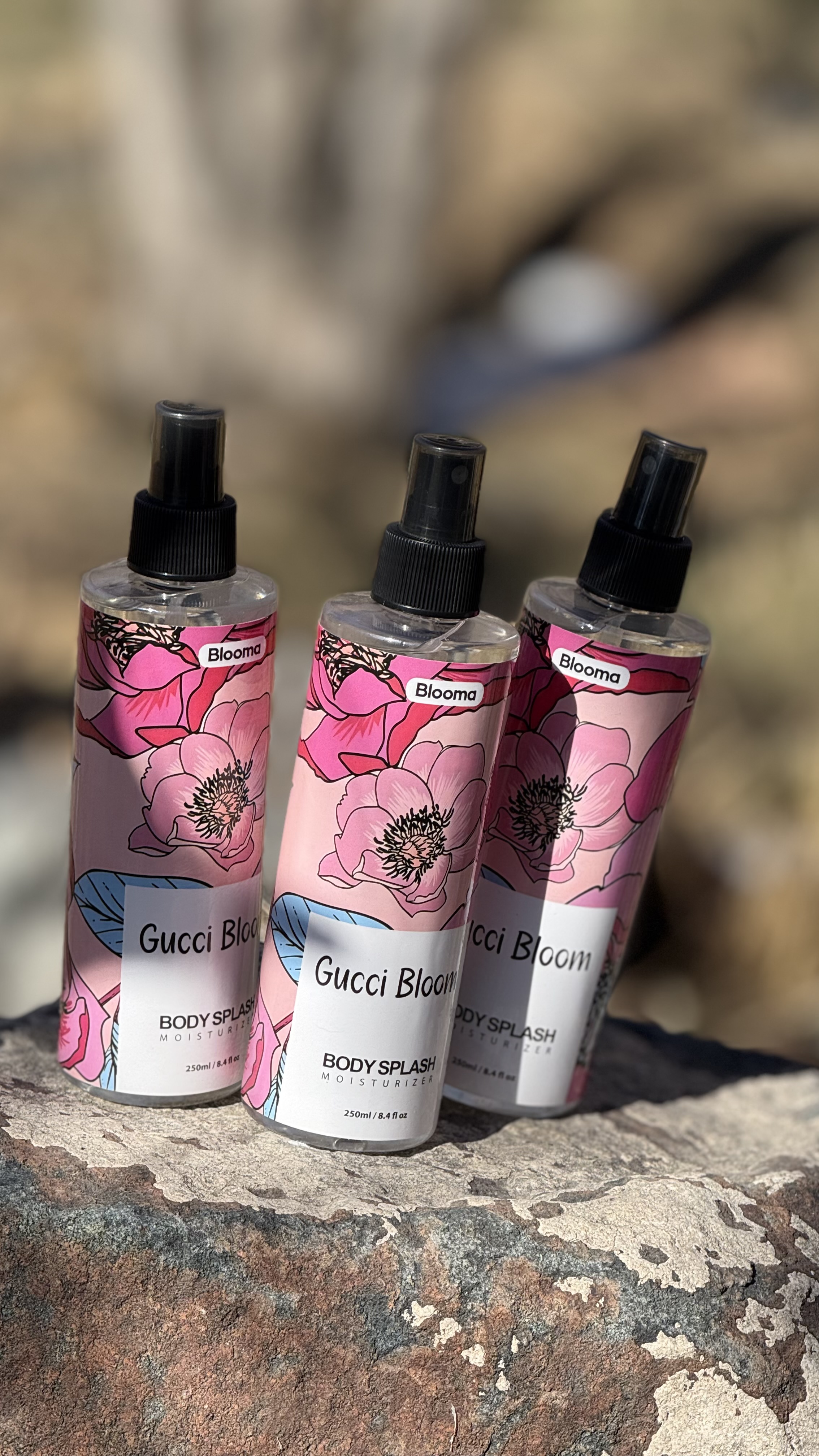 >بادی اسپلش : Gucci Bloom > بسیار ماندگار و ملایم >رایحه اولیه :گلابی، زنجبیل و پرتقال وجود دارد > رایحه پایانی :گل سرخ، یاس گلدار شب، یاس سمباک